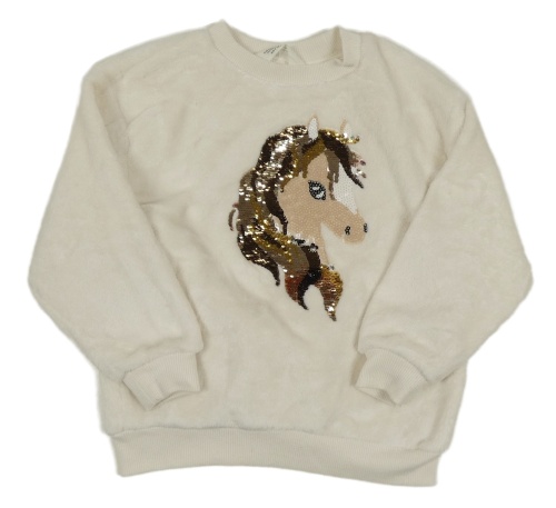 Smotanová plyšová mikina s koníkem z flitrů H&M