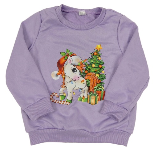 Levandulová mikina s jednorožcom a vánočním stromčekom