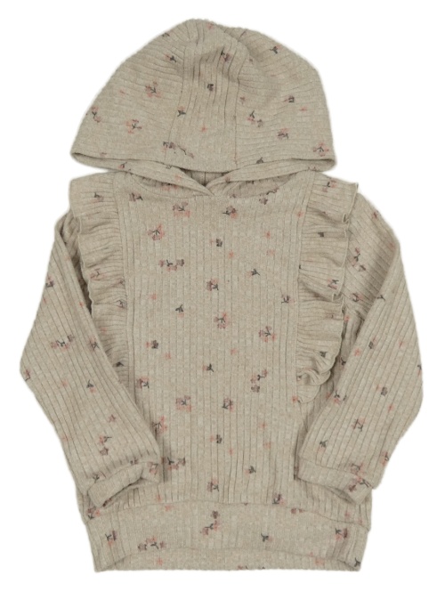 Béžová melírovaná rebrovaná úpletová mikina s kvietkami a volánikmi a kapucňou C&A