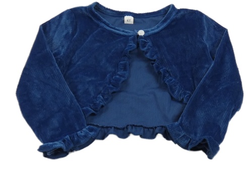 Tmavomodré žebrované sametové propínací bolérko s volánikmi