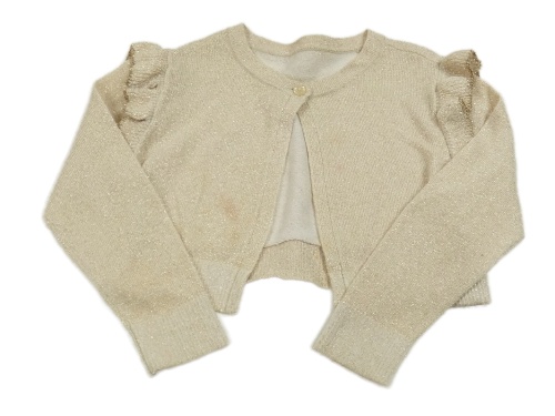 Béžové trblietavé svetrové bolerko s volánikmi Dunnes