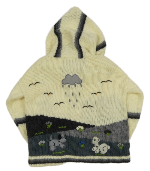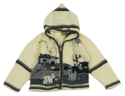 Smetanovo-sivý prepínaci sveter s obrázkami a kapucňou