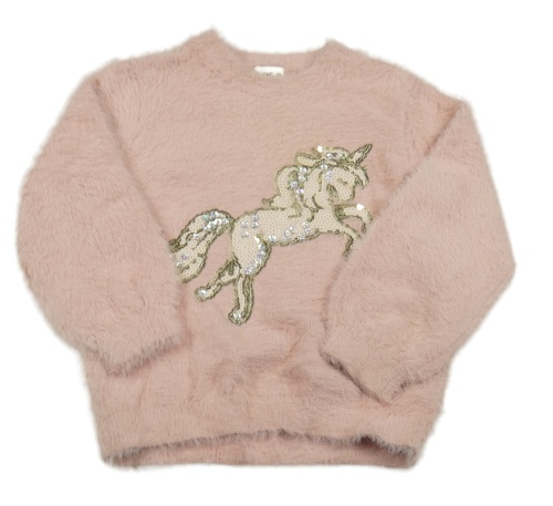 Svetloružový chlpatý sveter s jednorožcem z flitrů F&F