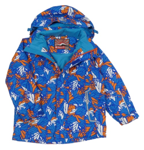 Tmavomodro-bielo-oranžová vzorovaná šušťáková jarná bunda s kapucňou Sibolandi