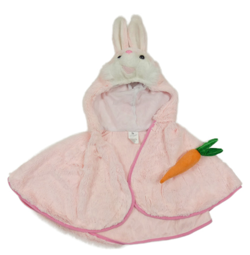 Svetloružové kožušinové pončo so zajačikom a kapucňou