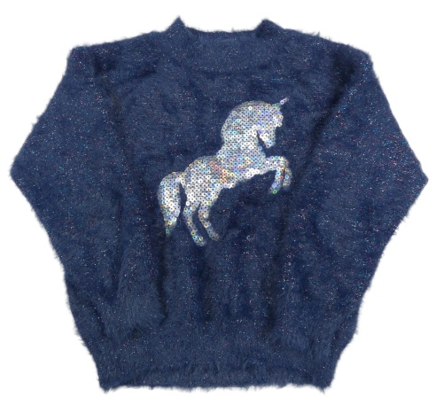 Tmavomodrý trblietavý chlpatý sveter s jednorožcom C&A
