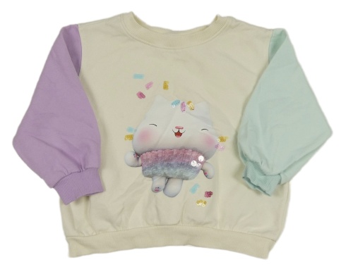Smotanová overisze mikina s mačkou a farebnymi rukávy H&M
