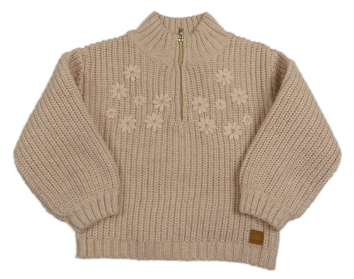 Pudrový melírovaný rebrovaný svetr kvety RIVER ISLAND