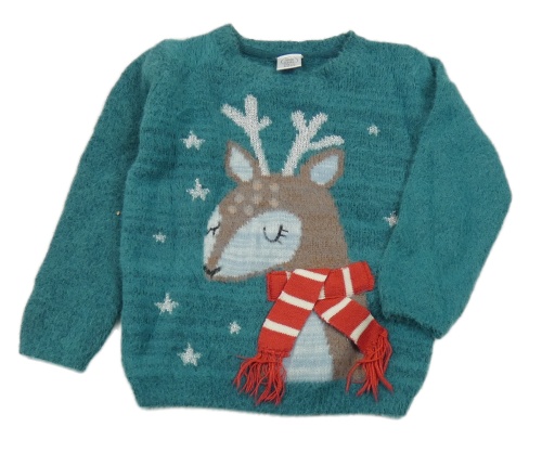 Modrozelený chlpatý sveter so sobom little kids