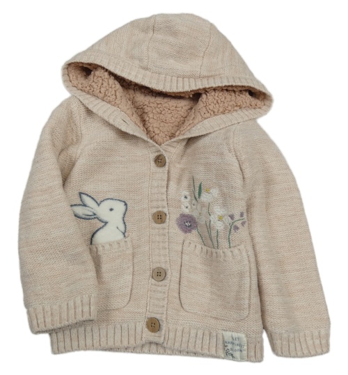 Pudrový melírovaný prepínaci zateplený sveter s králikom a kvietkami a trblietkami a kapucňou Nutmeg