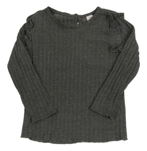Tmavosivé melírované rebrované tričko s volánikmi LC WaIKIKI