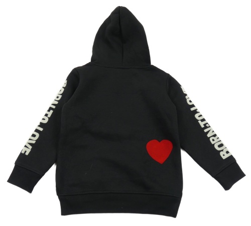 Čierna mikina so srdíčkem, nápisom a kapucňou