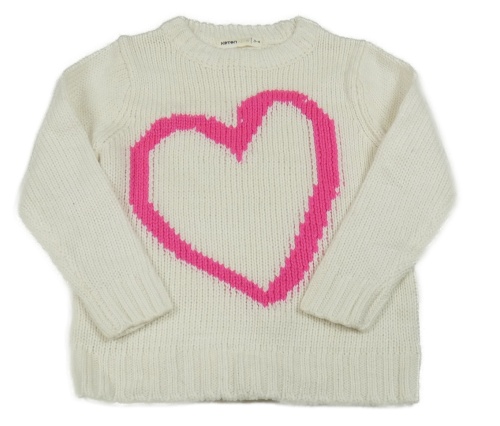 Smotanový pletený sveter so srdiečkom KOTON KIDS