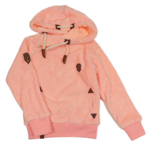 Neónově ružová chlpatá mikina s nášivkou a kapucňou
