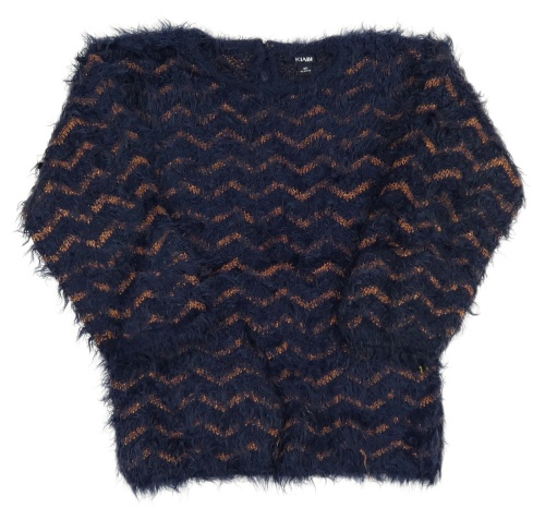 Tmavomodro-bronzový pruhovaný chlpatý sveter Kiabi