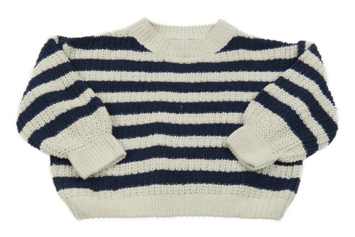 Smetanovo-tmavomodrý pruhovaný žinylkový sveter Topolino