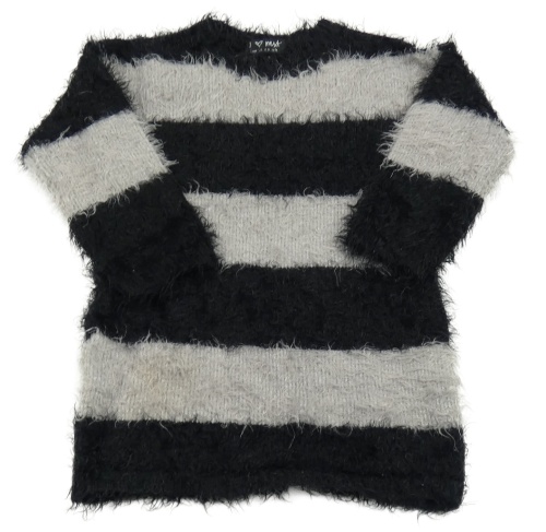Čierno-sivý pruhovaný chlpatý dlhý sveter Next