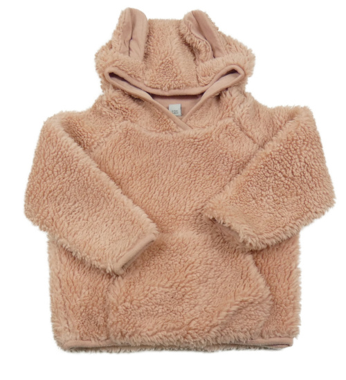 Pudrová huňatá podšitá mikina s vreckom a kapucňou s uškami Tu