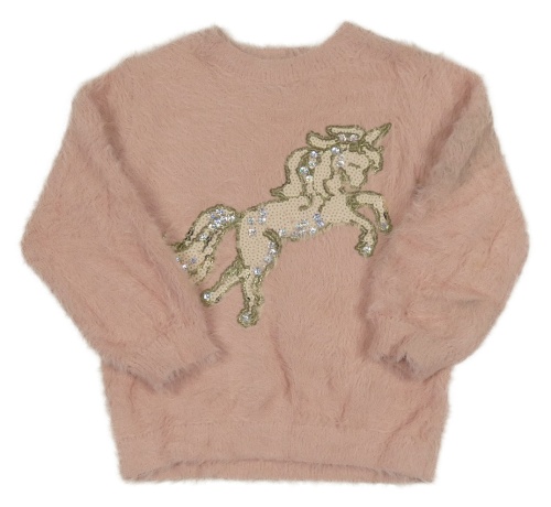 Svetloružový chlpatý sveter s jednorožcem z flitrů F&F
