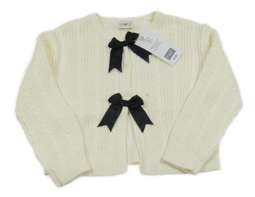 Nové - smotanový vzorovaný rebrovaný prepínaci oversize crop sveter s mašľami F&F