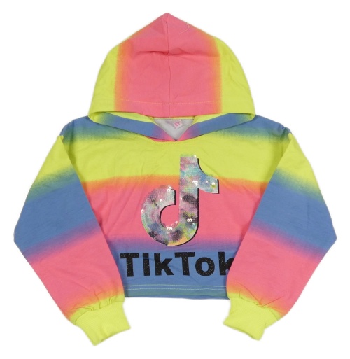 Ružovo-neonovo-ružová pruhovaná crop mikina s nápisom a kapucňou