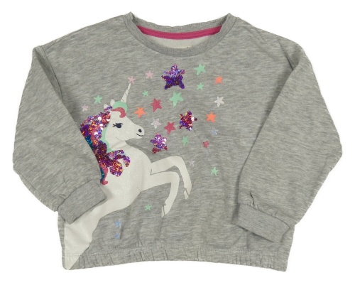 Sivá melírovaná oversize mikina s jednorožcom a flitrami