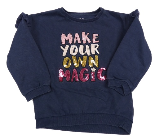 Tmavomodrá mikina s nápisem z flitrů a volánikmi F&F