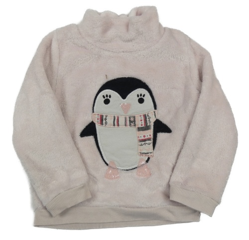 Svetloružová chlpatá mikina s tučňáčkem s flitrami a rolákom C&A