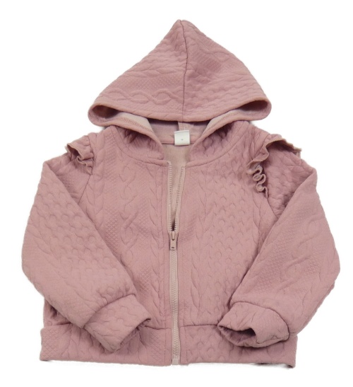 Staroružová vzorovaná prepínaci crop mikina s volánikmi a kapucňou SHEIN