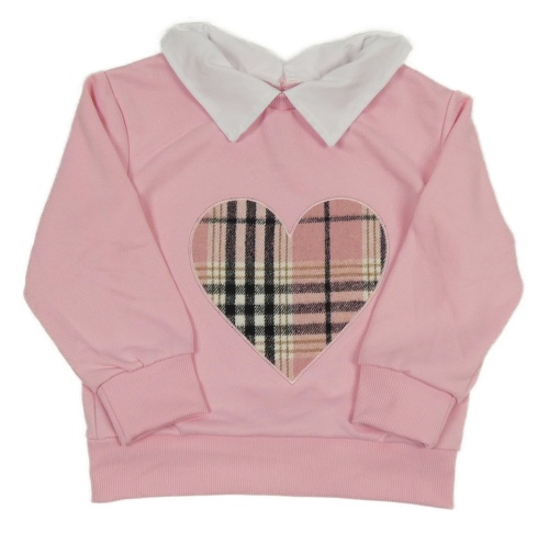 Ružová mikina s kostkovaným srdcem a golierikom Shein
