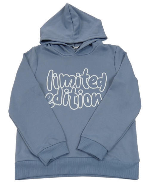 Modrošedá mikina s nápisom a kapucňou
