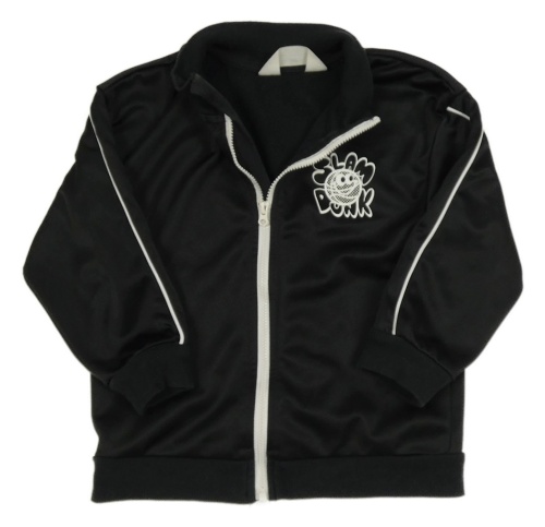 Čierna prepínaci športová mikina s loptou a nápismi a pruhmi