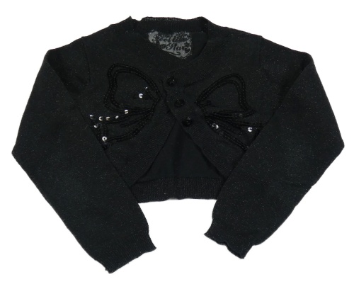 Černé melírované propínací svetrové bolérko s mašlí z flitrů a trblietkami St. Bernard