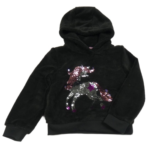 Čierna chlpatá mikina s jednorožcem z flitrů a kapucňou Kiki&Koko