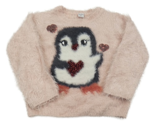 Svetloružový chlpatý sveter s tučňákem Dopodopo