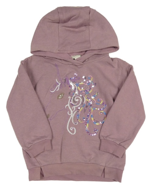 Pudrově fialová mikina s jednorožcem z flitrů a kapucňou Monsoon