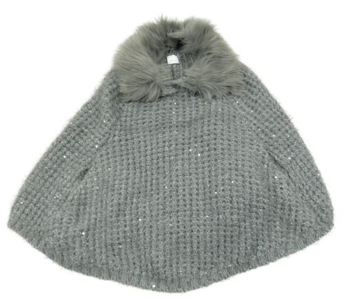 Sivé trblietavé pletené pončo s kožúškom Next vel.98-116