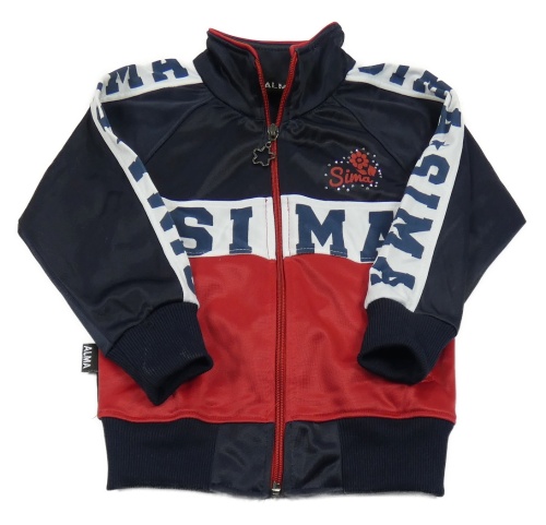 Tmavomodro-červeno-biela športová prepínaci mikina s nápisom