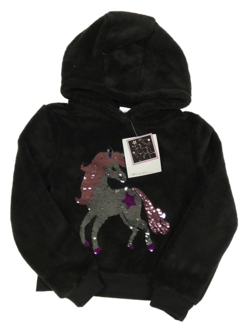Nové - Čierna chlpatá mikina s jednorožcem z překlápěcích flitrů a kapucňou Kiki&Koko