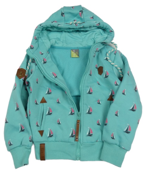 Modrozelená prepínaci mikina s plachetnicemi a kapucňou