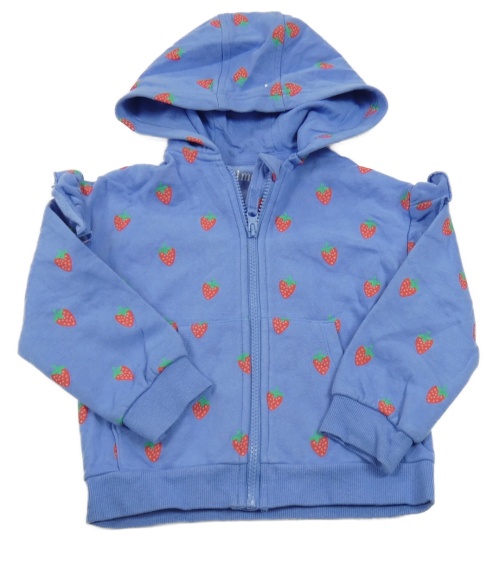 Modrá prepínaci mikina s jahodami a volánikmi a kapucňou Nutmeg
