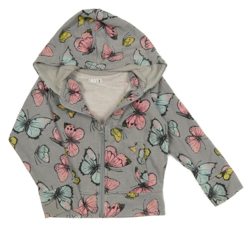 Sivá prepínaci mikina s motýlikmi a kapucňou