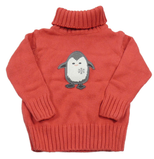 Jahodový sveter s tučňákem a rolákom Lupilu