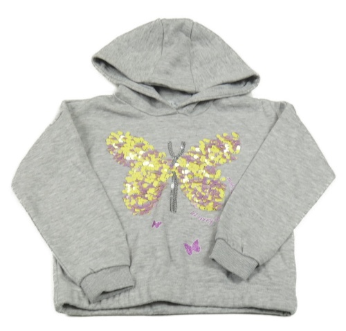 Sivá melírovaná crop mikina s motýlem z flitrů a kapucňou Primark