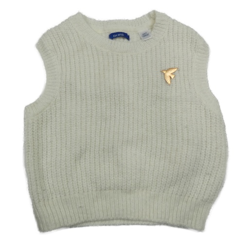 Biela pletená vesta s vtáčikom Okaidi