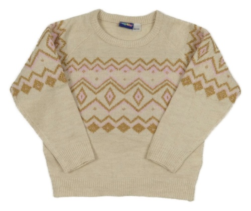 Smetanovo-ružovo-zlatý vzorovaný trblietavý sveter Lupilu