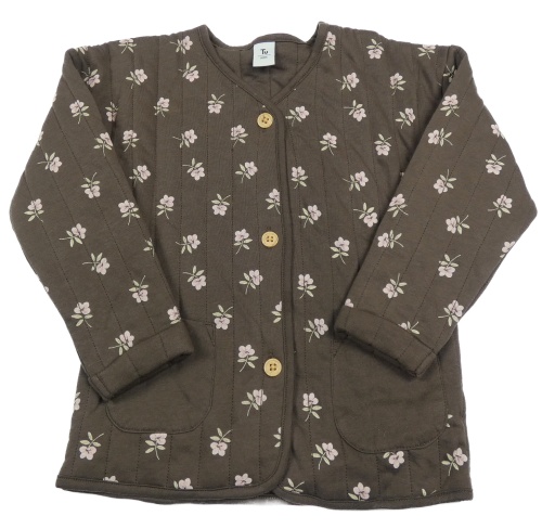 Tmavohnedá prošívaná/žebrovaná prepínaci vyteplená mikina s kvietkami Tu