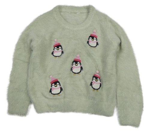 Světleolivovošedý chlpatý oversize sveter s tučňáčky PRIMARK