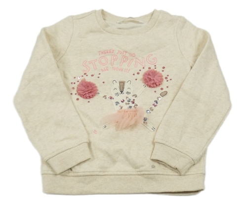 Svetlobéžová melírovaná mikina s mačičkou a flitrami a nápismi M&S