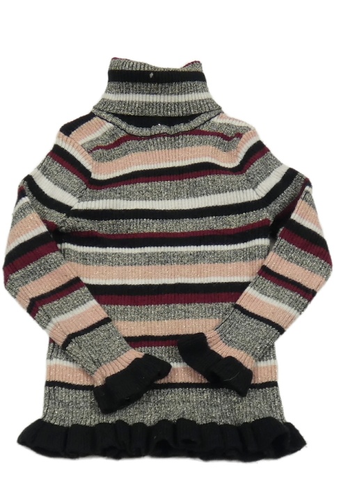 Čierno-bielo-ružovo-vínový trblietavý pruhovaný rebrovaný svetrový rolák Primark